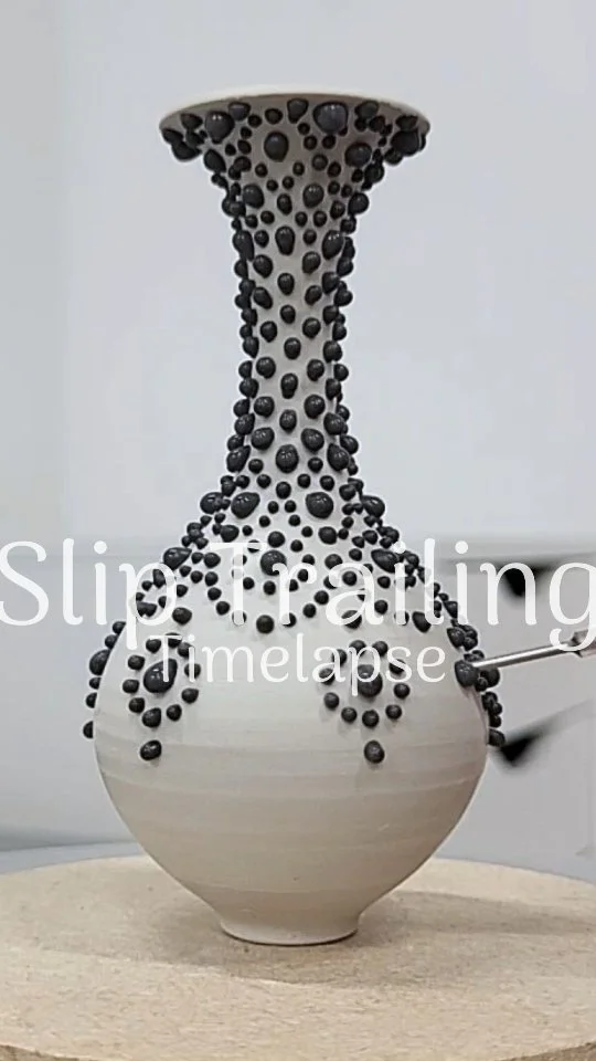 Black & white: Ivory glaze over black slip dots, giving a dusky black finish.